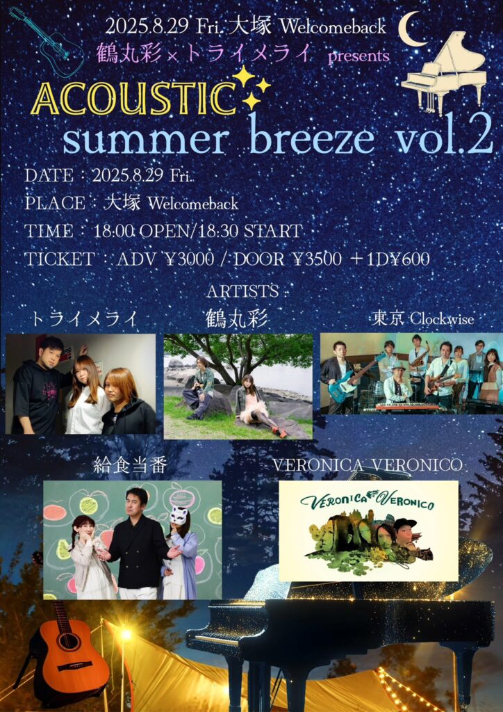 2025年8月29日 【ACOUSTIC summer breeze vol.2】 Blog Twitter Facebook はてブ Pocket LINE コピー 2026.01.12 2024年に引き続きまたお誘いいただきました!!東京Clockwiseは新曲と、野月稔先生をSAXに迎え、新たな一歩を踏み出しました。共演の皆様とは打ち上げをするくらい仲良しになりました。ありがとうございます!!